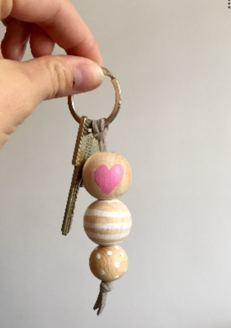 Maak je eigen houten sleutelhanger en versier deze verder met kralen en lintjes. Je kunt er ook een naam of een leuke tekst op zetten.