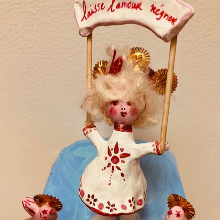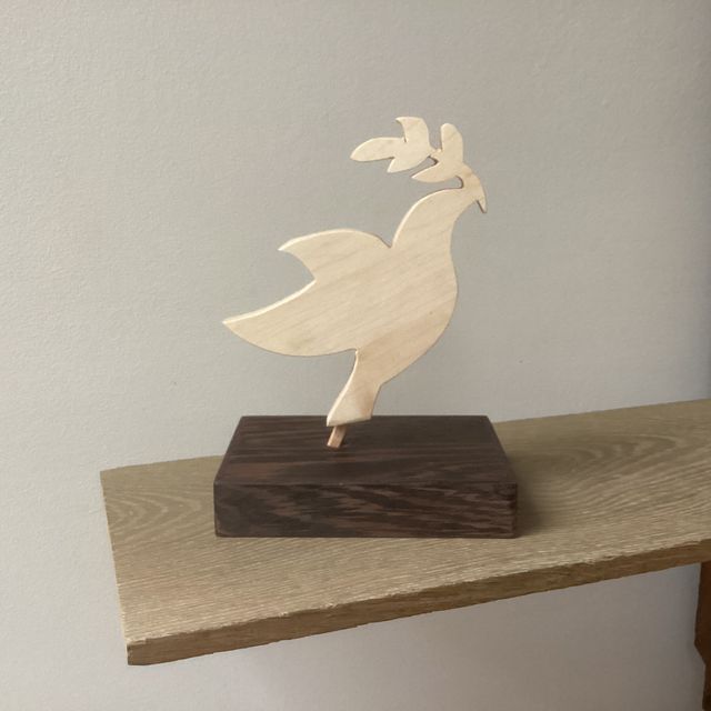 Gelukkig hulp van Elf en Duif, zo ontstond mijn invulling van Spel, Vrede en Liefde.